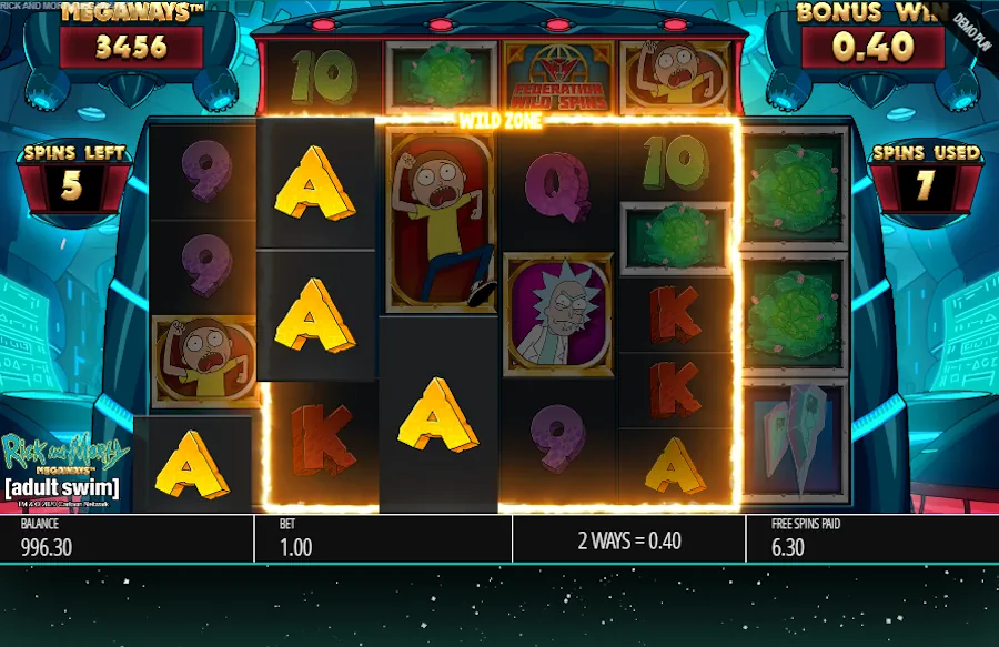 - Press the spin button to start your interdimensional adventure with Rick and Morty Megaways slot game.
